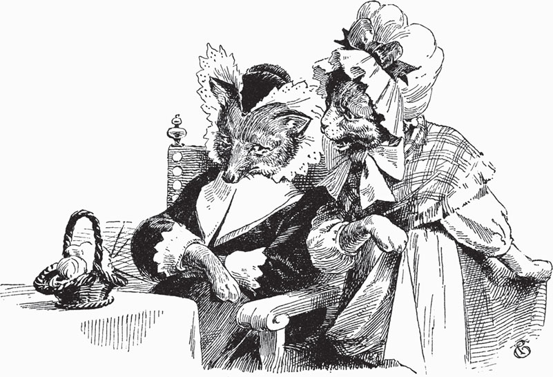 «Спасибо вам, кисанька, – сказал лис, – а что же поделывает госпожа лисичка?» Служанка отвечала ему: