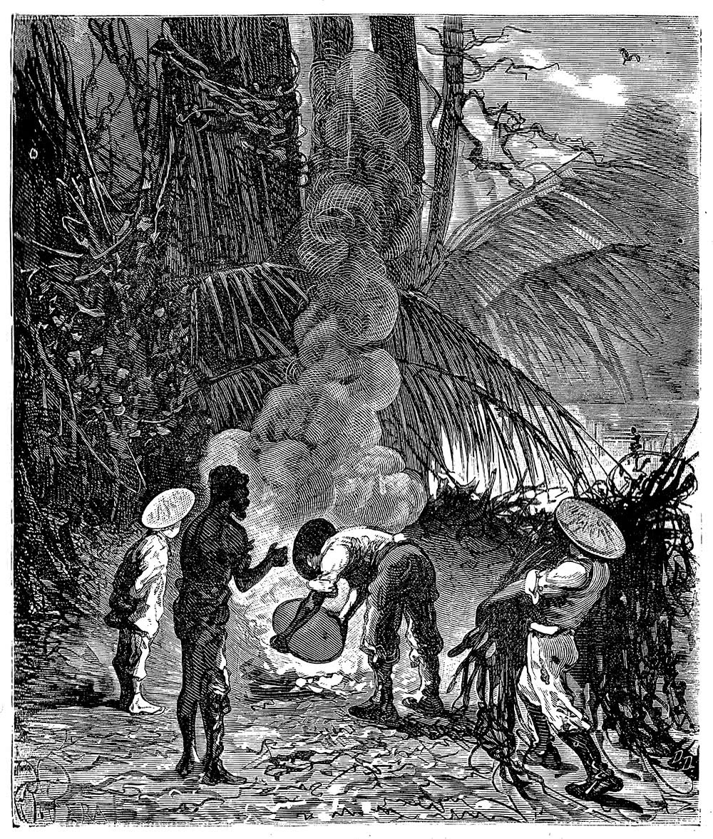 По сути, колонистам предстояло вновь расчистить участок. Пусть это куда менее утомительно, чем вырубка девственного леса, но для этого требуется столько же терпения, сколько и навыка. Так что двое белых и чернокожий начали вовсю «раскорчевывать». Мы намеренно сохраняем это слово, означающее «вырубать кустарник», так говорят гвианские поселенцы, и оно идеально отражает идею повторного завоевания земли, захваченной зарослями.