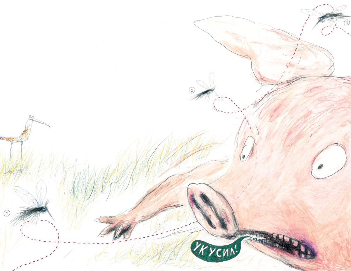 – Комар! – завопил Поросёнок. – Шприц крылатый, тоже мне! Мозгов нет, а кусается!