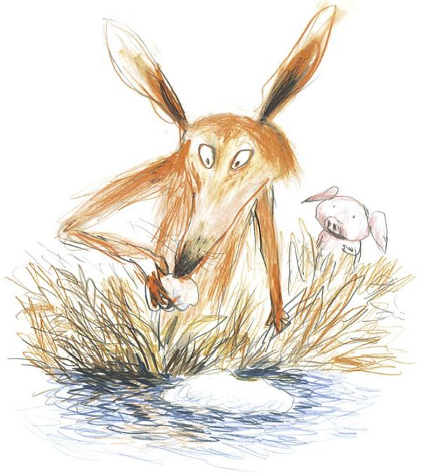 Лис и Поросёнок Хвост Морковкой прогуливались вдоль речки. Лис шёл себе и беззаботно насвистывал, как вдруг он увидел в речке что-то очень странное.