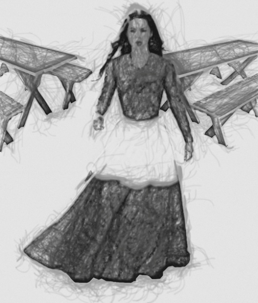 Я последовала за запахом готовящейся пищи к серой палатке, где в лучах утреннего солнца у костра стояла женщина. Она нарезала овощи в кипящую кастрюлю. Несколько столов с деревянными скамьями окружали очаг.