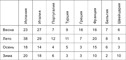 4. Времена года. Собрав данные о политических преступлениях в Европе в течение 100 лет, мы находим, что по временам года они распределяются следующим образом: