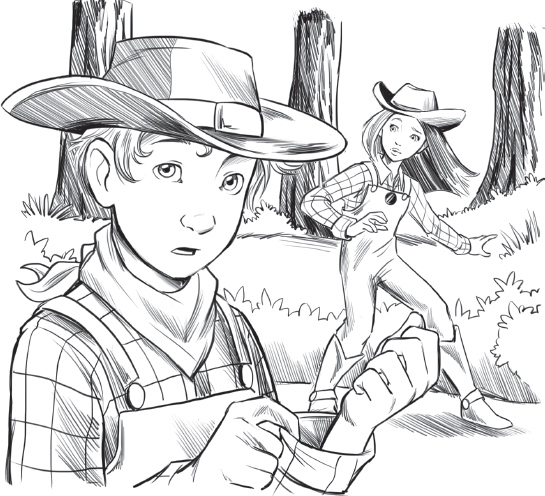 The further they walked, the more the woods thinned. Soon they arrived at the edge of a clearing, where the creek broadened into a wide pool. Standing knee-deep in the rippling water were two boys. The taller one looked like he was in his late teens while the smaller boy was only a bit older than Tom and Zuma.