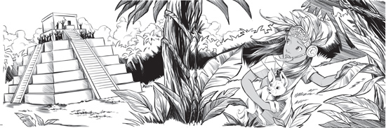 Many hands reached out to catch the slave girl, but Zuma was fast and determined. She bolted towards the jungle bordering the pyramid. Charging into the cool green leaves, she ran until she could no longer hear the shouts of the crowd.