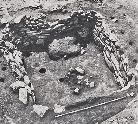 Кроме того, были обнаружены кости более 10 видов животных (таких, как свинья, антилопа и сибирская косуля), запасы пшена, а также 27 каменных жилищ с печами и погребами. Археологи считают, что постройки в Карубе могли быть сделаны 4 тыс. лет назад, и это служит доказательством того, что человек в Тибете стал вести оседлый образ жизни, а его производственная деятельность расширилась от охоты до сельского хозяйства. Считается, что эта примитивная деревня просуществовала не менее тысячи лет и имела такой же уровень развития культуры, как Мацзяяо, Бань-Шань и Мачан вдоль Желтой реки[1]. В развалинах района Цюйгун в Лхасе были найдены две древние каменные гробницы и почти 10 тыс. каменных орудий. Найденные там костяные инструменты – в основном буравчики и иглы. Особенность игл состоит в том, что отверстие у них располагается на кончике, а не на ушке, как у иглы современной швейной машины. Это первая находка подобного рода. Керамические изделия включают кувшины с одной петлевой ручкой или двумя петлевыми ушками, а также пузатые кувшины с чашеобразным горлышком. Они покрыты глазурью и украшены разнообразными геометрическими рисунками. Кроме того, в раскопках были найдены каменные лопаты и ручные мельницы, свидетельствующие о наличии земледельческого хозяйства в Лхасе 4 тыс. лет назад[2].