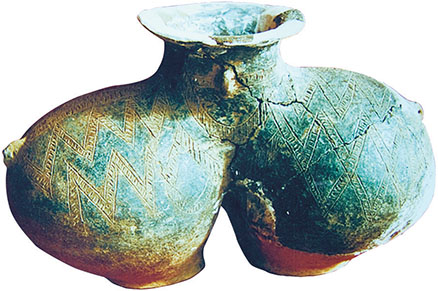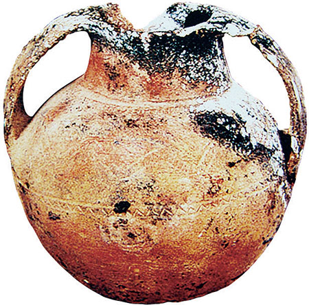 Глиняный кувшин с двумя ручками, найденный при раскопках в Цюйгуне