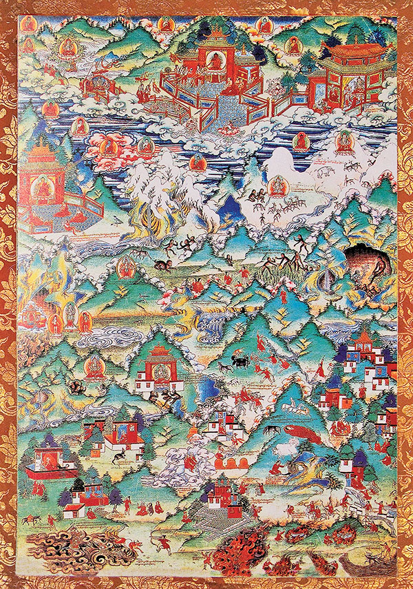 Тханка, на которой изображено происхождение тибетцев (из коллекции дворца Потала)