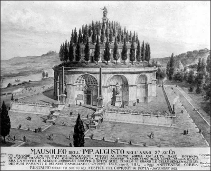 El Mausoleo de Augusto según el diseño reconstructivo de 1912 y que forma parte de la Colección Giuseppe Gatteschi (1) y el estado actual de la construcción (2 y 3).