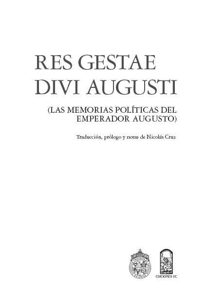 Res gestae divi Augusti: (las memorias políticas del Emperador Augusto) / traducción del latín, prólogo y notas de Nicolás Cruz.