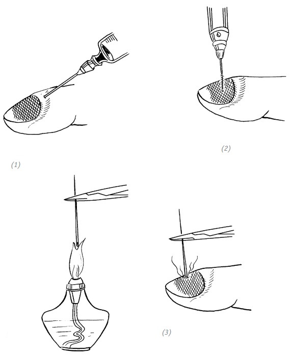 Рис. 2–1. Способы удаления подногтевой гематомы