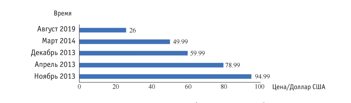 Примечание: автор отследил стоимость жёстких дисков компании Seagate Technology на сайтах amazon и JD в разные периоды времени: в 2012–2019 годы цена 1-терабайтных жёстких дисков очевидным образом снижается.