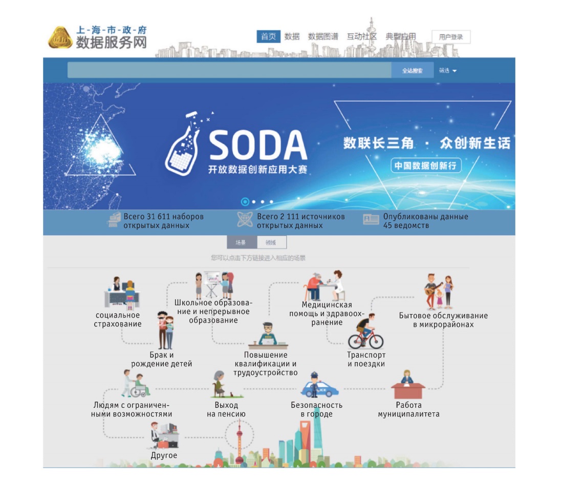 Основная цель предоставления открытого доступа к государственным данным состоит в стимулировании их использования. Одновременно с созданием и совершенствованием платформы открытых данных Шанхай усиленно продвигает социум-ориентированное использование открытых данных и культивирует экосистему открытых государственных данных. В результате возник Шанхайский чемпионат по созданию приложений с использованием открытых данных. Сокращённое название чемпионата SODA (Shanghai Open Data Apps) точно совпадает с написанием английского слова soda, содовая. «Большой объём тесно связанных с жизнью города данных, которые кроются в руках правительственных и общественных учреждений, напоминают газированную воду, закупоренную в стеклянной бутылке: она кажется спокойной, стабильной и беззвучной, но стоит открыть крышку, как в мгновение ока высвобождается неисчерпаемая энергия» [28].