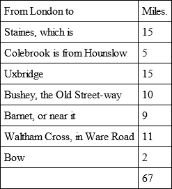 And because there may be many parts of the crossroads which cannot be accounted in the number abovementioned, or may slip my knowledge or memory, I allow an overplus of 50 miles, to be added to the 90 miles above, which together make the cross-roads of Middlesex to be 140 miles.