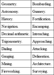 And herewith should also be preserved and carefully taught all the customs, usages, terms of war, and terms of art used in sieges, marches of armies and encampments, that so a gentleman taught in this college should be no novice when he comes into the king’s armies, though he has seen no service abroad. I remember the story of an English gentleman, an officer at the siege of Limerick, in Ireland, who, though he was brave enough upon action, yet for the only matter of being ignorant in the terms of art, and knowing not how to talk camp language, was exposed to be laughed at by the whole army for mistaking the opening of the trenches, which he thought had been a mine against the town.