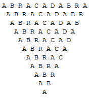 But there was still another madness beyond all this, which may serve to give an idea of the distracted humor of the poor people at that time, and this was their following a worse sort of deceivers than any of these; for these petty thieves only deluded them to pick their pockets and get their money (in which their wickedness, whatever it was, lay chiefly on the side of the deceiver's deceiving, not upon the deceived); but, in this part I am going to mention, it lay chiefly in the people deceived, or equally in both. And this was in wearing charms, philters,67 exorcisms,68 amulets,69 and I know not what preparations to fortify the body against the plague, as if the plague was not the hand of God, but a kind of a possession of an evil spirit, and it was to be kept off with crossings,70 signs of the zodiac,71 papers tied up with so many knots, and certain words or figures written on them, as particularly the word "Abracadabra,"72 formed in triangle or pyramid; thus, —