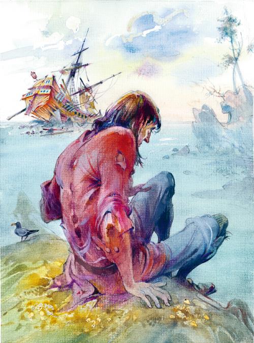 Вот она, кара за непослушание! Он уже прощался с жизнью, но, видно, судьба сулила ему не смерть, а долгие и трудные испытания. Несчастного выкинуло на необитаемый остров…