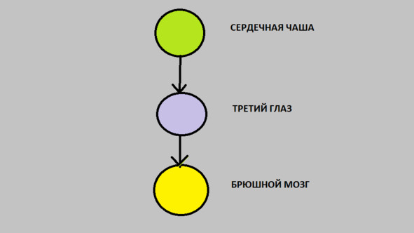 – Брюшной мозг. Он находится ниже пупка, чуть ниже (примерно на 2 пальца) манипура-чакры. Имеет жёлтое свечение. Центр предупреждает об опасности (как, впрочем, и Сердечный Центр). Однако при неочищенном организме он улавливает лишь низкочастотные вибрации Сети (Сеть тёмных). О ней разговор чуть ниже.