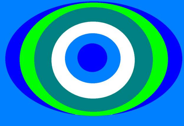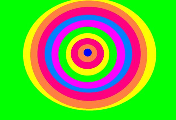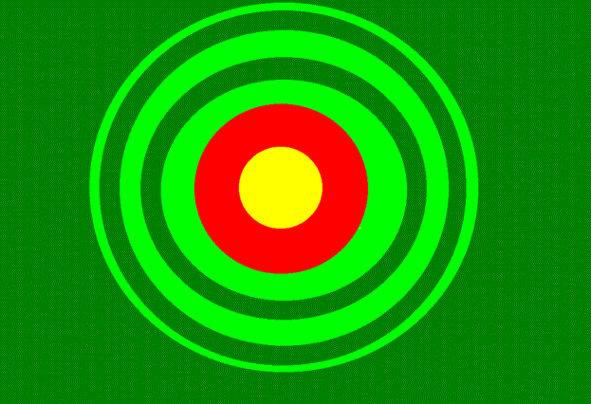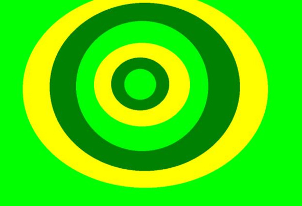…..Сосредоточься на этой Мандале. Ты видишь в центре жёлтый сияющий круг. Конечно, здесь трудно подобрать сияющие цвета, но ты представь себе, что они действительно сияющие. Дальше следуй своим сознанием за повторяющимися окружностями: то светло-зелёной, то тёмно-зелёной. Вообще-то, эти окружности следуют одна за другой и так до бесконечности.