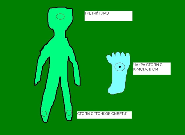 Будь внимательна к своим чакрам и кристаллам стоп, где имеется т.н. «точка смерти», а также к «Третьему Глазу». Произведи накачку энергией. «Третий глаз» – синей, чакры стоп – оранжевой.