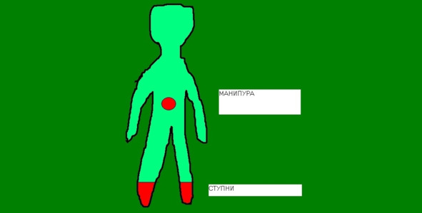 Дорогой брат, слабое место у тебя ступни и центр живота. Необходима накачка этих огненных центров сияющим синим и фиолетовым цветом.