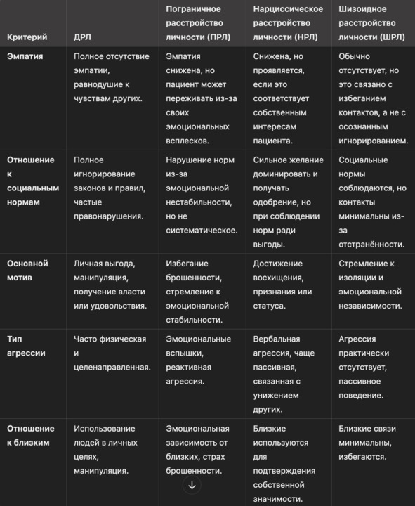 ДРЛ имеет яркие отличия от других расстройств личности, в первую очередь благодаря антисоциальному и манипулятивному характеру поведения. Эти особенности делают данное расстройство одним из наиболее сложных для лечения и требуют от специалистов глубокого понимания и специализированного подхода.