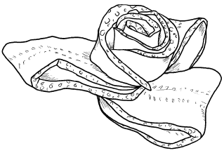 2. Один из ломтиков свернуть трубочкой, оставшиеся оборачивать вокруг него, имитируя лепестки розы.