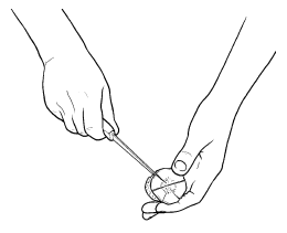 – нож для снятия кожуры (с коротким вогнутым лезвием с продольной прорезью);
