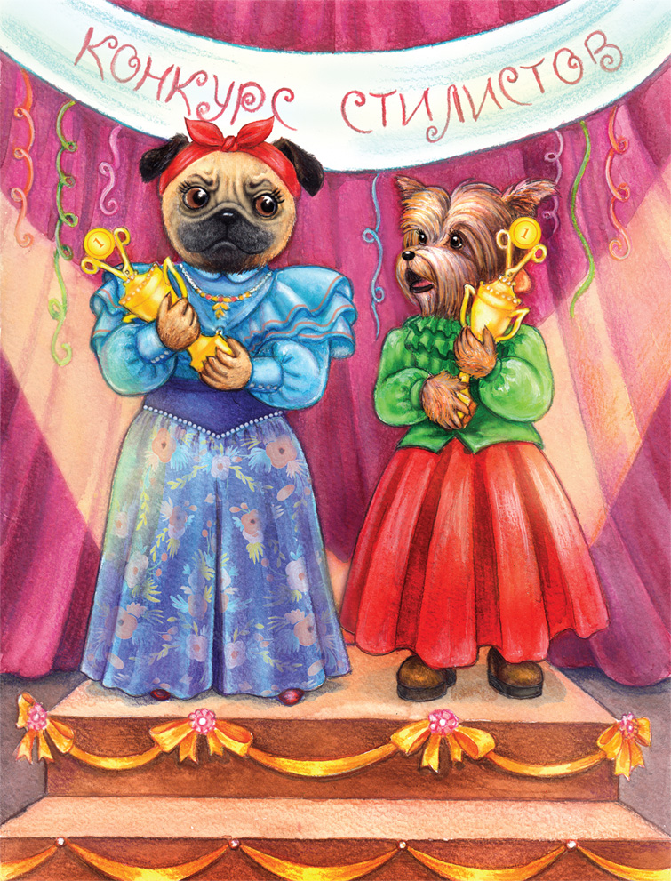 Оркестр бодро заиграл туш, все зааплодировали. Марсия встала, заулыбалась, вскинула голову и медленно пошла по проходу к сцене. Вот он, час ее триумфа! Мопсиха опять лучшая из лучших и никому пальму первенства не отдаст. Награда досталась ей самым честным образом, не потому, что кто-то сделал богатые подарки членам жюри и попросил объявить Марсию чемпионом. Нет! Золотой кубок собачка обрела благодаря своему труду, упорству, таланту, ангельски доброму характеру. Во время праздничного обеда все начнут поздравлять лучшего стилиста Прекрасной Долины. Даже кошке Феодоре, которая сейчас украсила свою мордочку кислой улыбкой, придется говорить Марсии приятные слова. Феодора всегда на втором месте, там и останется. А на первом только Марсия! Более никто и никогда не встанет на верхнюю ступень пьедестала почета!