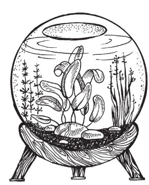 Форма аквариума может быть самой различной – прямоугольной, кубической, треугольной, многоугольной, цилиндрической, круглой. Наилучшими как с эстетической, так и с практической точки зрения по праву считаются прямоугольные аквариумы. В углу комнаты удобно расположить треугольный аквариум, а на стену повесить плоский аквариум в виде картины. Иногда изготавливают фигурные аквариумы очень сложной формы (рис. 1). Весьма необычно выглядит в офисах аквариум в виде журнального столика с прозрачной столешницей, под которой располагаются красивые тропические рыбки; интересны шарообразные и цилиндрические аквариумы, но в них животные и растения выглядят искаженно. Современные дизайнеры разработали аквариумы в виде башен с встроенными часами, пирамид, колонн и другие.