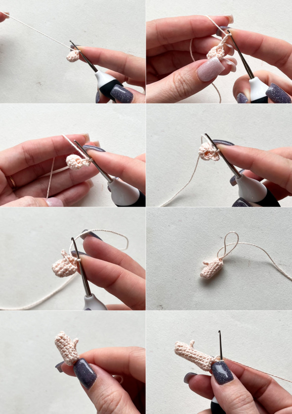 10. -12. 10 сбн (3 ряда) Ручка готова. Можно немножко набить кулачок, но она такая маленькая, что я детальку не набиваю.