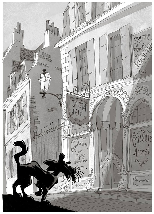 Ловко перепрыгивая с одного подоконника на другой, с балкона на карниз, кот забирался всё выше и выше, пока не оказался у базилики Сакре-Кёр. Пробежав по безлюдной улочке, Додо остановился перед витриной роскошного ресторана. Над входом красовалась вывеска – на ней изящными буквами с завитками было выведено: «Золотой ключ».