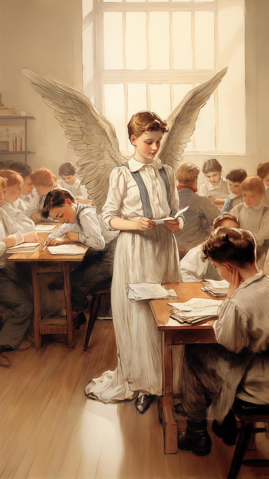 Представьте, появляется новоиспечённый «просветлённый» ангел, постигший всю мудрость земного Бытия. Даже вид у него особенный. Стойкость духа несгибаемая, а вера пределов не знает. И любовь… Любовь такая изнутри, так и льётся, сдержать её просто невозможно. Заходит он в аудиторию, а перед ним Вечность открывается. И говорит он слова заветные, и одобрительно кивают головой экзаменаторы, радуются, улыбаются. Сияние такое исходит, что через закрытые двери свет пробивается. Любви такой силы на всех хватает, ещё и остаётся. Аж дух захватывает.