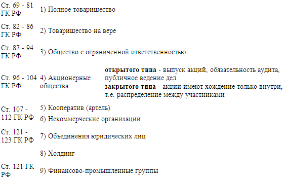 ♦ Гражданский кодекс Российской Федерации ст. 48–64, 66-115,
