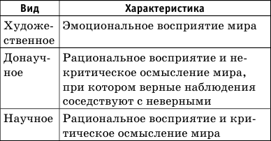 Вненаучное «знание» принципиально отрицает даже внешние признаки научного знания и сознательно ему противопоставлено. В отличие от традиционного и религиозного знания, вненаучное не основано ни на какой традиции. Иногда как отдельный тип знания выделяется интуиция – непосредственное постижение умом истины, не выведенное логическим анализом из других истин и не воспринимаемое через органы чувств.