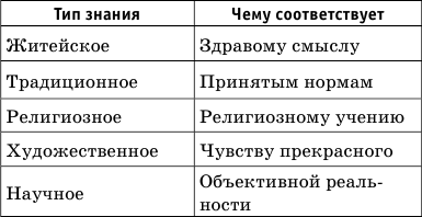 В последнее время выделяются виды знания, противостоящие научному. Строго говоря, они не являются видами знания, поскольку не основаны на опыте и не проверены (а зачастую и непроверяемы) на практике: