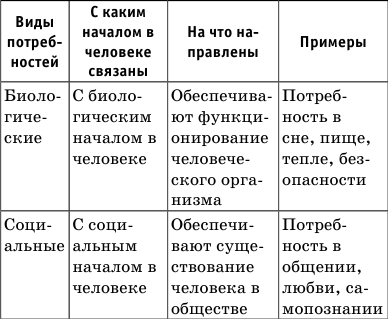 Если биологические потребности являются общими для всех людей, то социальные потребности могут различаться как у отдельных людей (в зависимости от их воспитания и культурного уровня), так и у разных социумов (в зависимости от различных социокультурных и экономических факторов). Потребность, приобретающую конкретную форму, называют желанием. Например, потребность в пище может принять форму желания съесть тарелку борща со сметаной.