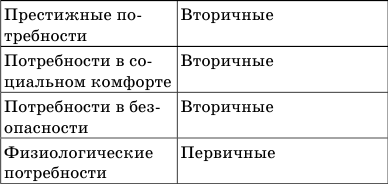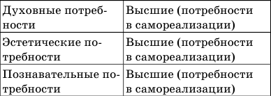 В различных классификациях можно встретить упоминания о духовных, экзистенциальных, престижных и других потребностях. Духовные потребности обычно связывают с реализацией творческого начала в человеке, престижные потребности – с необходимостью утверждения своего положения в обществе, экзистенциальные потребности – с обеспечением безопасности своего существования. Очень распространена пирамида потребностей американского психолога А. Маслоу, считавшего, что после удовлетворения потребностей низшего уровня у человека актуализируются потребности более высокого порядка: