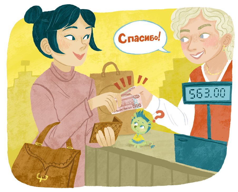 – Чтобы покупать одежду, игрушки, продукты, чтобы кататься на аттракционах и летать на самолёте – для всего этого нужны деньги. У каждой вещи (например, у мороженого, игрушки или велосипеда) или услуги (похода в кино или стрижки в парикмахерской) есть своя цена. Это то количество денег, которое нужно отдать, чтобы вещь или услуга стали твоими. Понимаешь, Спо?