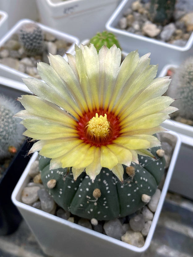 Несмотря на то, что прародители всех популярных культиваров были природными экземплярами, получение и развитие новых форм остается исключительно уделом селекционеров. Ученые-ботаники подсчитали, что вероятность появления формы Kabuto обуславливается таким сочетанием генов, что вероятность его появления в результате случайного скрещивания, не превышает 1/1000000. Так что найти подобный экземпляр в природе почти невозможно. Постоянные переопыления, посевы, отбор самых обещающих сеянцев и постоянная забота об их сохранении – вот повседневная жизнь кактусиста-селекционера, и для многих она настолько увлекательна, что превращается в настоящую страсть. Я лично знаю нескольких людей, коллекционирующих культивары одного единственного вида – Astrophitum asterias, и такие «коллекции одного вида» считаются среди всех увлеченных кактусами людей весьма интересными и ценными.