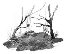 Совсем скоро компания достигла другого берега озера Жути, где пейзаж сменился на ровные болотистые земли. Повсюду были мутные пруды и озёра, окружённые высоким тростником, скалистые холмы и трясины. Айви ахнула, указывая рукой: