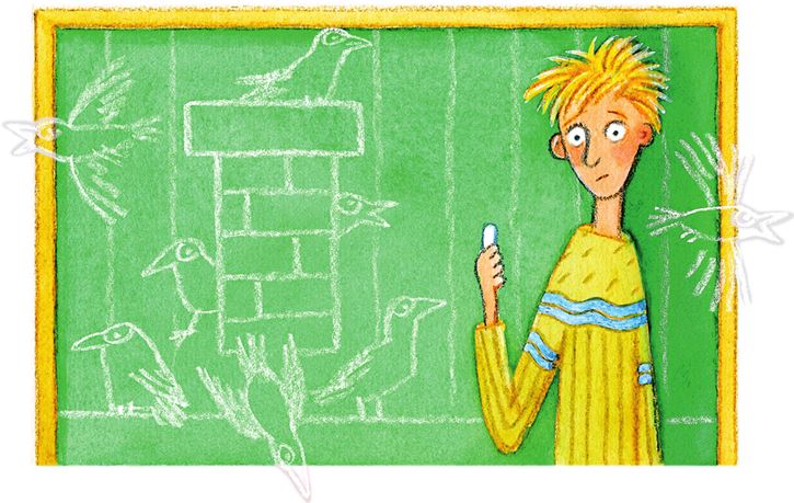 Урок прошел так быстро, что я и оглянуться не успел. Сначала мы решали задачу, потом Ольга Дмитриевна объясняла новую тему, а потом мы снова решали задачу, но уже самостоятельно. Под конец урока к доске вызвали Бочкина. Он обреченно выполз из-за парты, взял мел и ужасно медленно записал сначала условие, а потом начал решать. И все никак у него не выходило. Ребята заскучали и стали перешептываться, по классу полетели записки и бумажные шарики, а Митька все стоял у доски и никак не мог справиться с задачей. Она была про ворон, которые прилетели и расселись на крыше. Одна часть села перед трубой, другая – за ней, и надо было посчитать, какая часть во сколько больше. Задача была простая, но с хитростью. Чтобы ее решить, много ума не надо, но нужно внимательно прочесть условие, а Бочкин никогда не отличался вниманием.