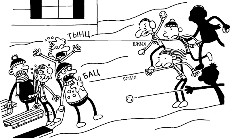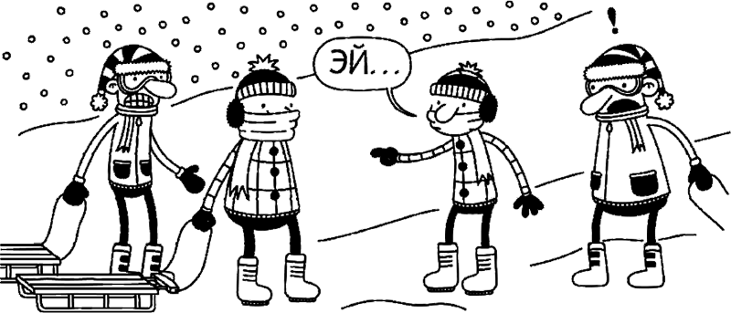 Но когда выпадает СНЕГ, всё меняется. Ребятам с Нижней Суррей-стрит хочется покататься с нашего холма НА САНКАХ, и тогда мы поступаем с ними так же, как они поступали с нами.