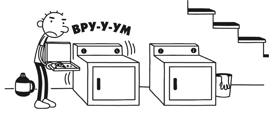 Когда к бабушке приходят гости, нам не разрешается пользоваться кухней. Это значит, что мы можем ужинать только после их ухода. Вчера вечером Родрику, видно, надоело ждать, и он разогрел остатки пиццы в бабушкиной сушилке для белья.
