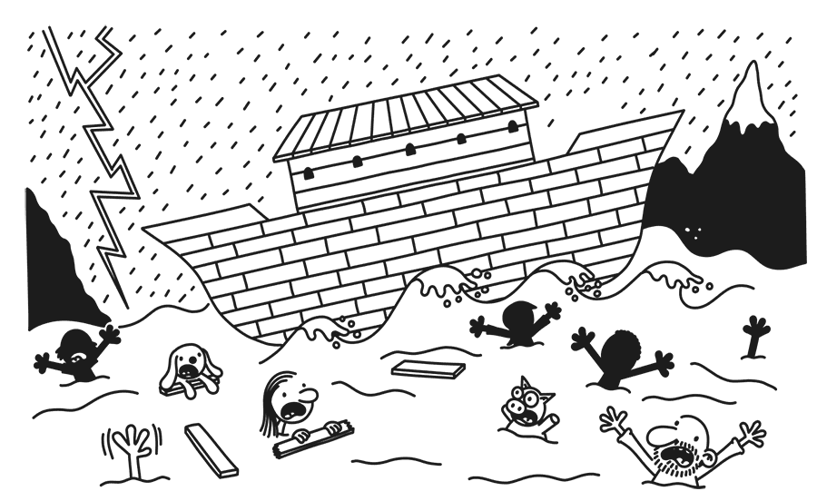 Рассказывают, дождь продолжался сорок дней и сорок ночей, потом понадобилось ждать ещё 150 дней, пока вода не схлынет. И всё это время Ной торчал в своей лодке вместе с кучей зверей, женой и тремя сыновьями.