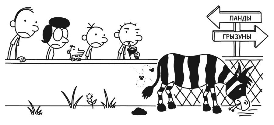 Мэнни хотел отправиться в сафари-парк, мы часто ездили туда, когда я был маленький. Животные там выглядят очень ГРУСТНЫМИ, особенно ослик, которого красят, чтобы он был похож на зебру.