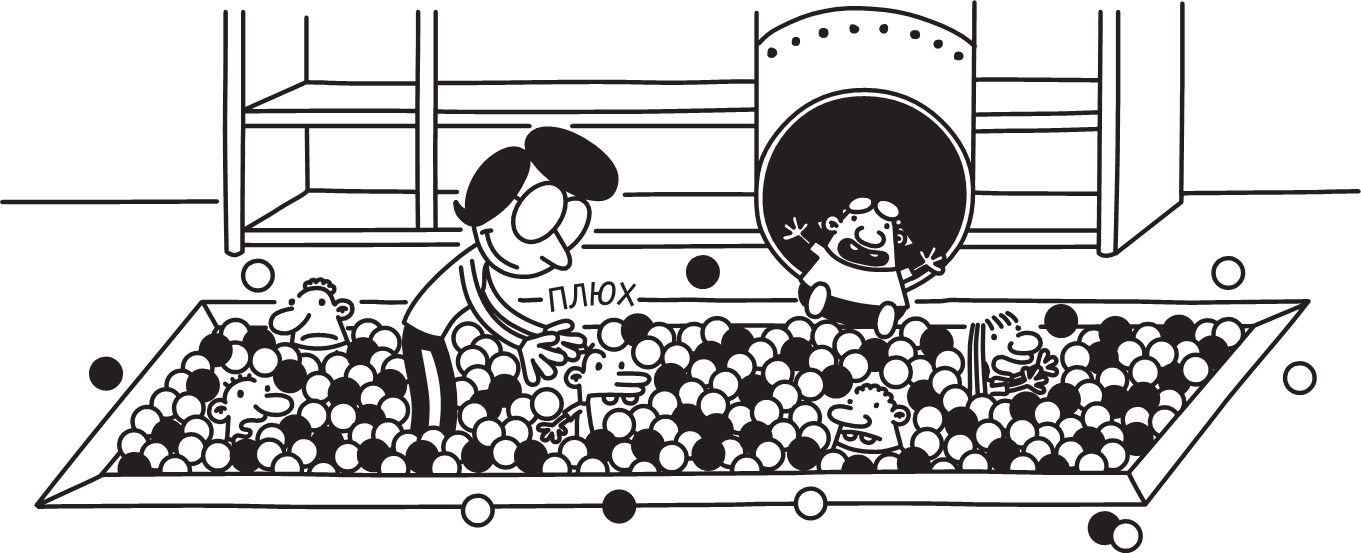 Это означало, что до Мэнни я могу добраться только одним путём: забравшись по спиральной пластиковой горке, которая спускалась в бассейн с шариками. Начнём с того, что я не любитель тёмных закрытых пространств и не горел желанием ползти по этой штуке вверх.