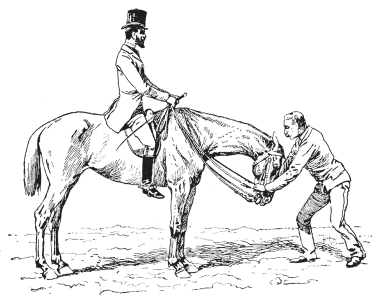 Часто приходится слышать, что сгибания ни к чему не ведут. Удивляться нечему. Сгибания представляют собой такой тонкий прием, что они доступны только, как я сказал выше, мастеру своего дела, и если браться за него неумело, то результаты будут только отрицательные, а лошадь, к которой их станут применять, будет непременно испорчена.