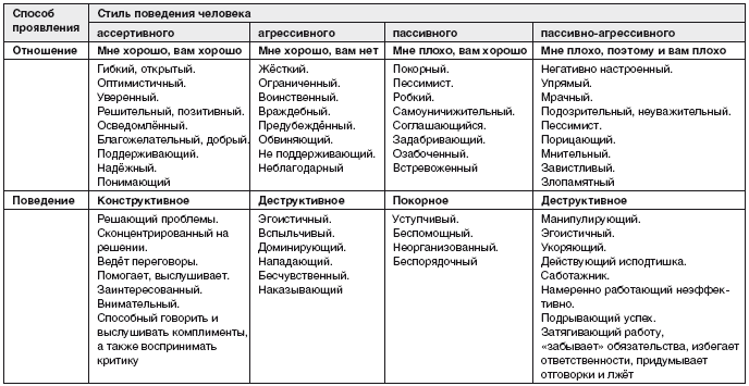 Давайте подробнее рассмотрим каждый стиль поведения и общения.