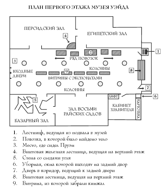 – Ба-а, – отозвался Пруэн, – и всего-то? Я говорил, что здесь никого не было после десяти, когда музей закрылся, вот и все. Откуда мне знать? Тут до этого были дюжины посетителей… да не улыбайтесь… дюжины! У нас тут популярное место!