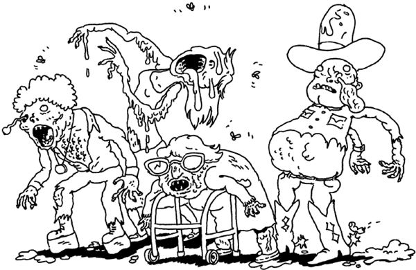 Мозги вытекали из ноздрей. Хлопья кожи свисали с тел огромными беспорядочными лоскутами. Каждый новый зомби выглядел еще более отталкивающим, нежели предыдущий.